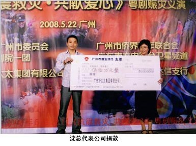5月22日,由廣東南方電視臺(tái)衛(wèi)星頻道主辦,廣東mk体育-MKsports官网集團(tuán)協(xié)辦的《抗震救災(zāi)?共獻(xiàn)愛心》粵劇賑災(zāi)義演在南方劇院舉行,mk体育-MKsports官网集團(tuán)董事長(zhǎng)沈漢標(biāo)先生代表集團(tuán)為災(zāi)區(qū)捐款50萬(wàn)元,此次賑災(zāi)義演活動(dòng),共募集善款120多萬(wàn)元。這些善款將通過(guò)廣州市慈善會(huì)全額捐往災(zāi)區(qū)。